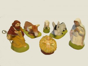 SAINTE VIERGE, ST JOSEPH, JESUS, ANE ET BOEUF, UN MOUTON (7CM)